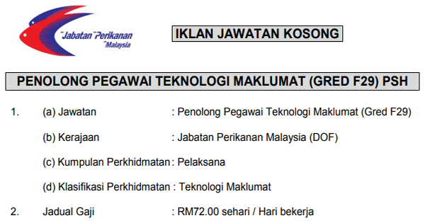 1. Penolong Pegawai Teknologi Maklumat Gred F29 (PSH)