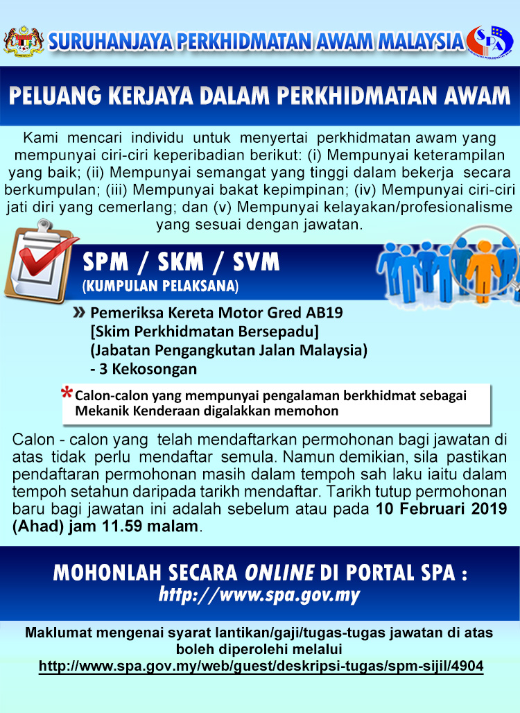 Tarikh Tutup : 10 Februari 2019