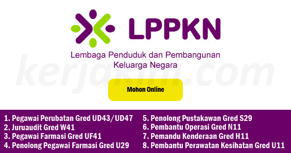 Permohonan adalah dipelawa daripada warganegara Malaysia yang berumur tidak kurang daripada 18 tahun ke atas pada tarikh tutup iklan jawatan dan berkelayakan bagi mengisi kekosongan jawatan di Lembaga Penduduk dan Pembangunan Keluarga Negara (LPPKN) sebagaimana berikut:-