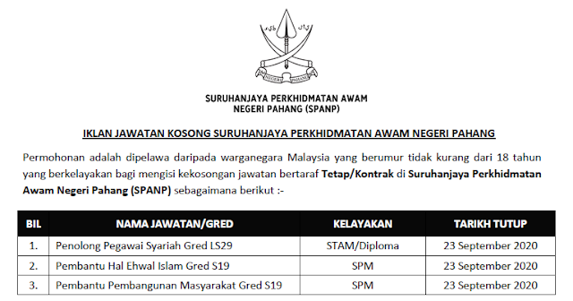 - Nama Majikan : Suruhanjaya Perkhidmatan Awam Negeri Pahang (SPANP)