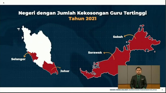 Sementara itu, negeri dengan jumlah kekosongan guru tertinggi bagi tahun terkini 2021 adalah: