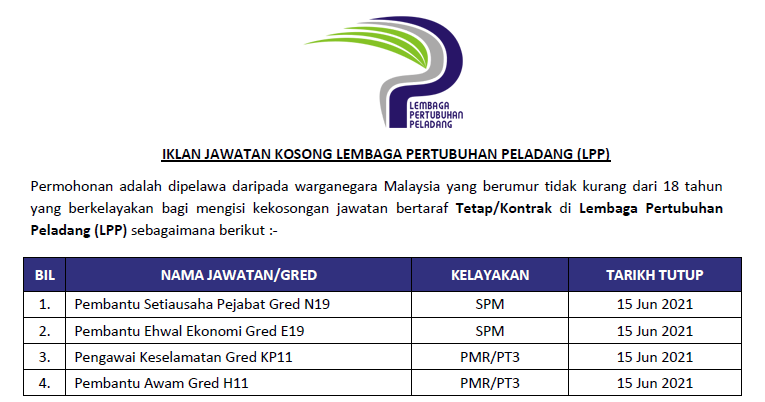 - Tarikh Tutup Permohonan : 15 Jun 2021 (Selasa)