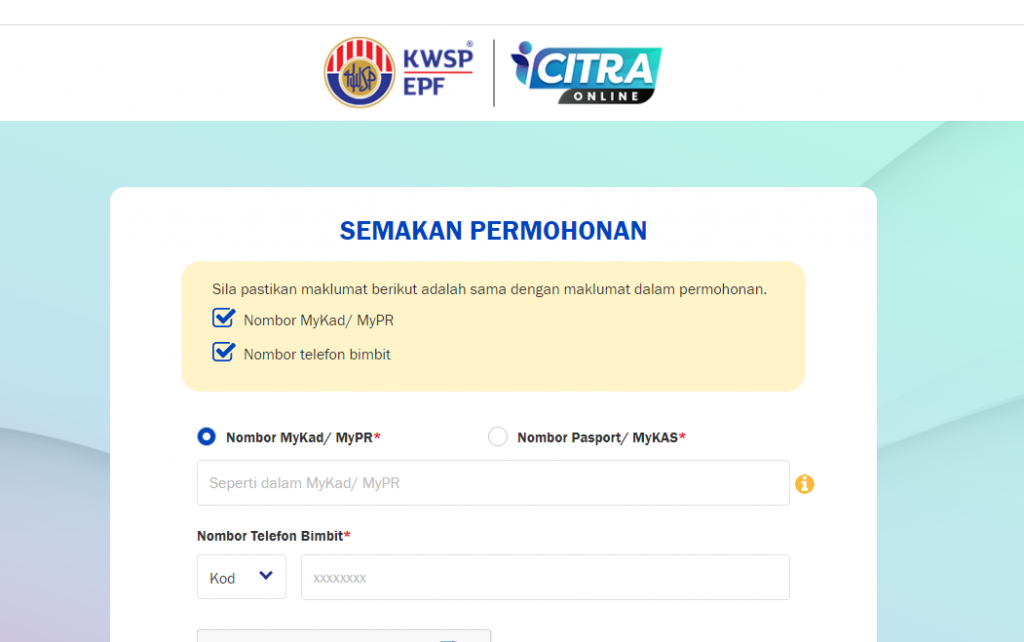 SEMAKAN STATUS PERMOHONAN I-CITRA KWSP