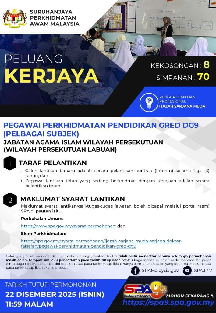 - Pegawai Perkhidmatan Pendidikan Gred DG9 (Wilayah Persekutuan Labuan)