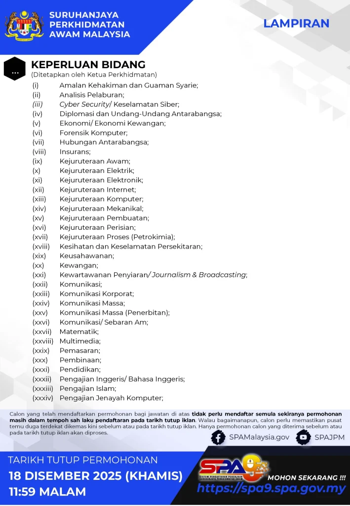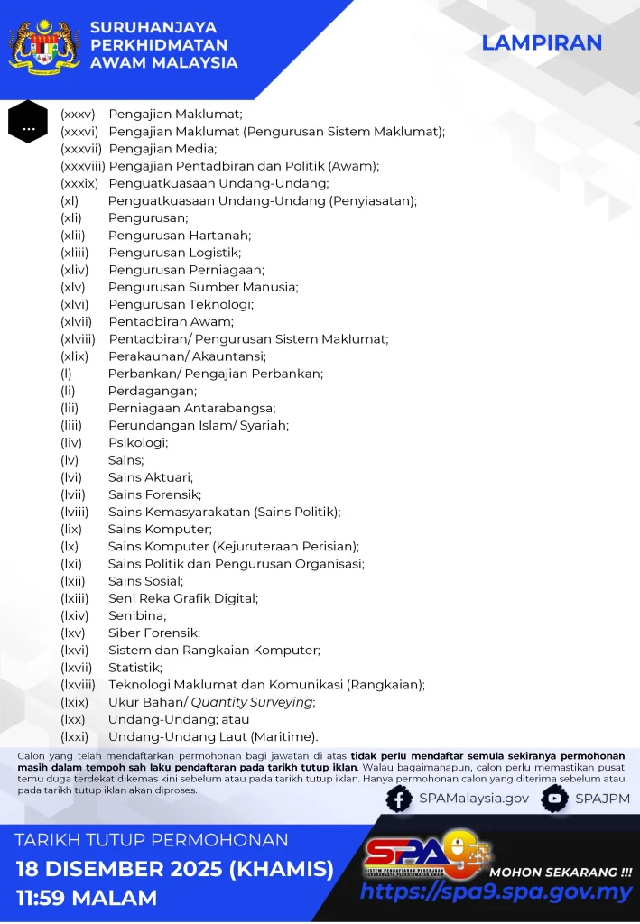 | Tarikh Tutup: | 18 Disember 2025 (Khamis) |